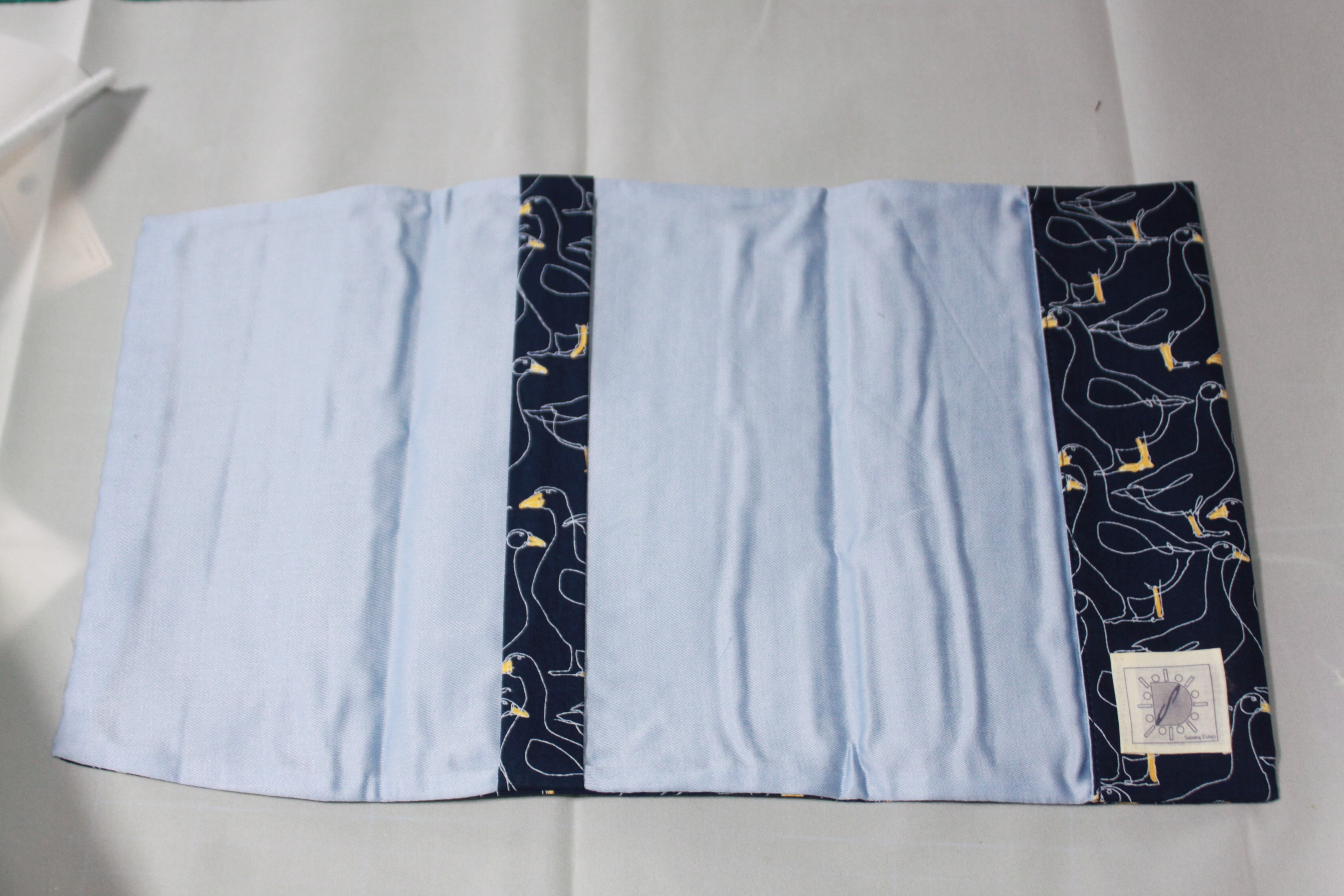 紺地にガチョウ柄のプリント生地はとても可愛らしく、おしゃれな印象を与えてくれます。また、このブックカバーは歌地が付いており、丈夫な素材で作られているので、長く使うことができます。毎日の使用でも傷みにくく、本を守ってくれます。お気に入りの本を大切にする方にもぴったりです。
